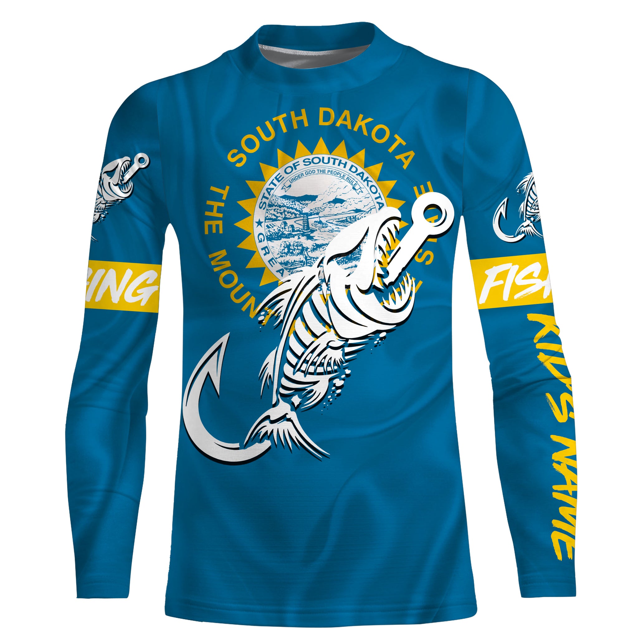 SD South Dakota Fishing Flag Fish hook skull Custom sun protection fishing shirts for men, women, kid NQS3406