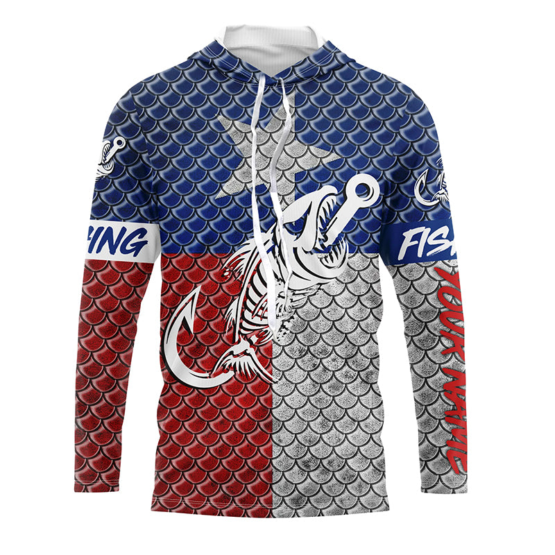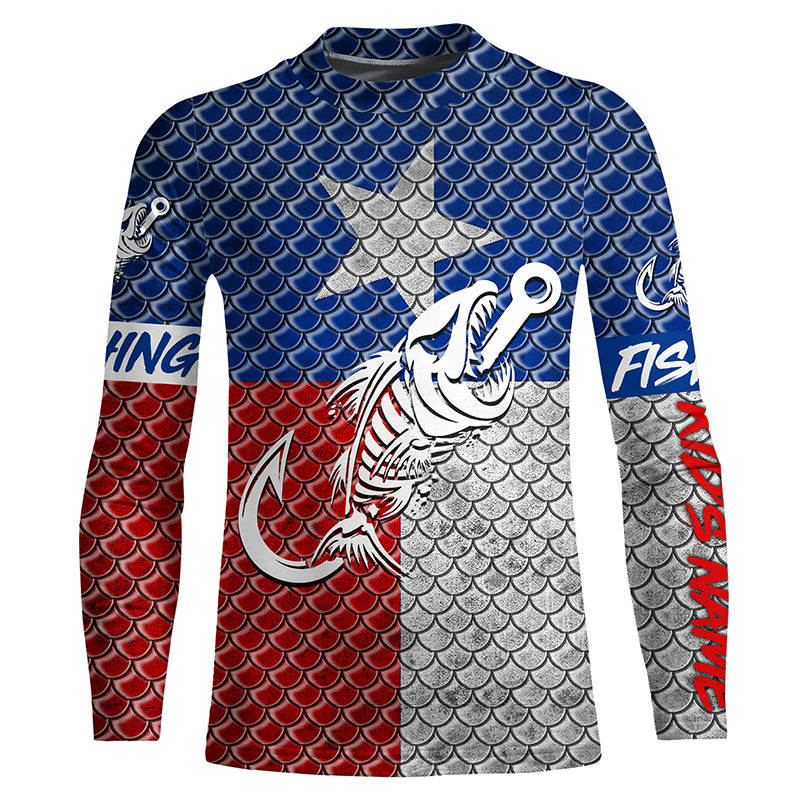 Texas fishing Fish hook fish skull scales Custom Name sun protection fishing shirts for men, women,kid NQS5169