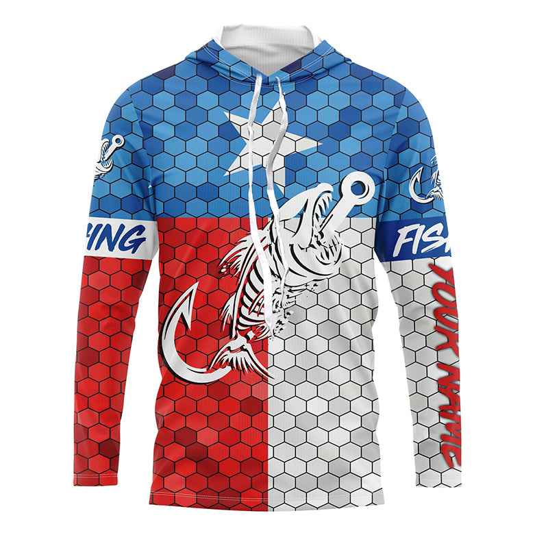 Texas fishing Fish hook skull Custom Name sun protection 3D fishing shirts for men, women, kid NQS5170