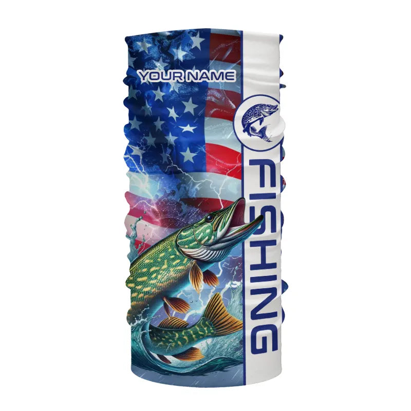 American Flag Northern Pike lightning Long Sleeve Fishing Shirts custom Patriotic Pike fishing jerseys NQS9562