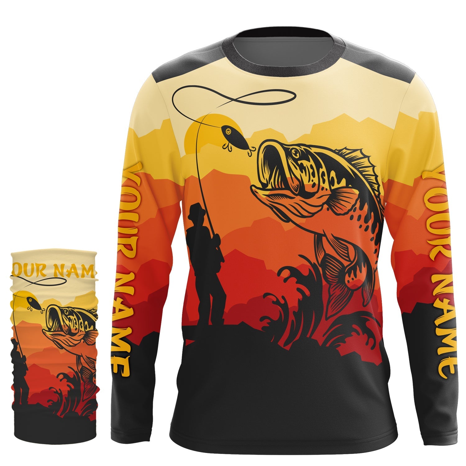 Bass Fishing Sunset Background Custom Name Long Sleeve Fishing Shirts, Bass Fishing jerseys - TMTS044
