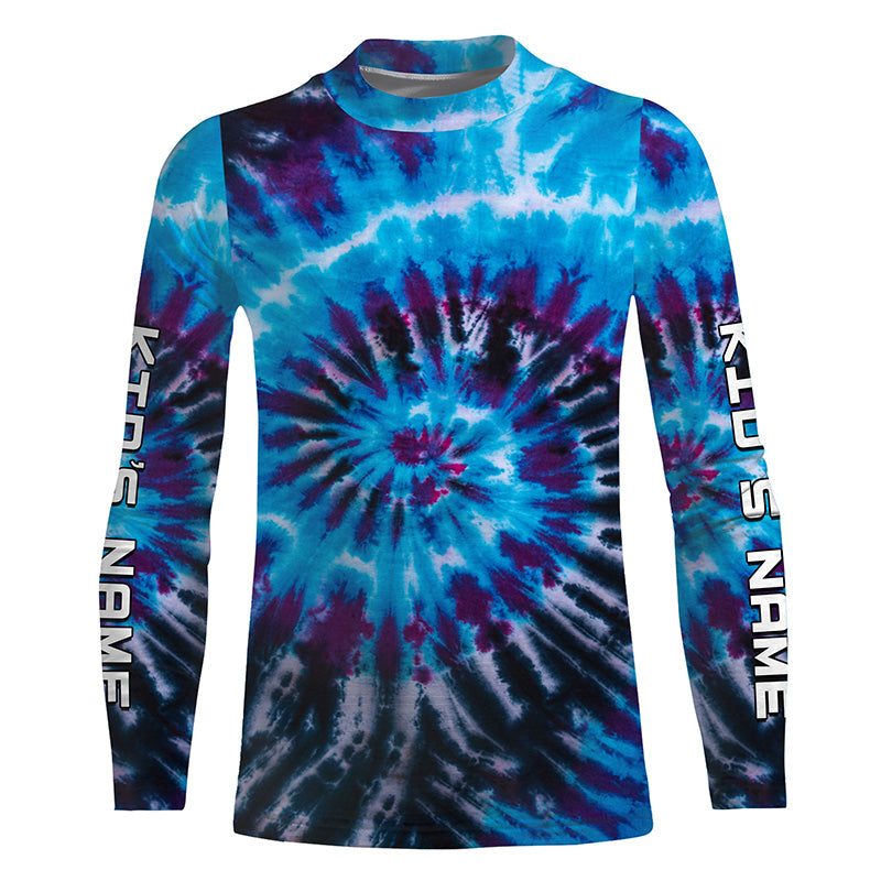 Blue black Tie Dye Custom printed Shirt, Performance long sleeve UV protection Fishing shirt FSD3364