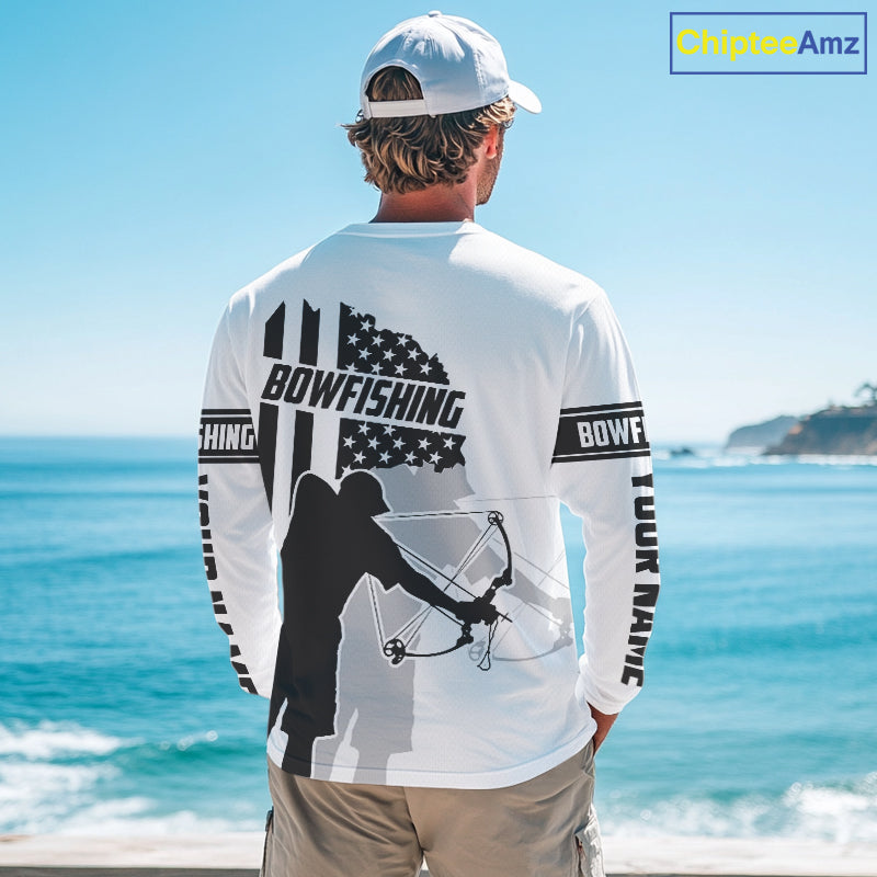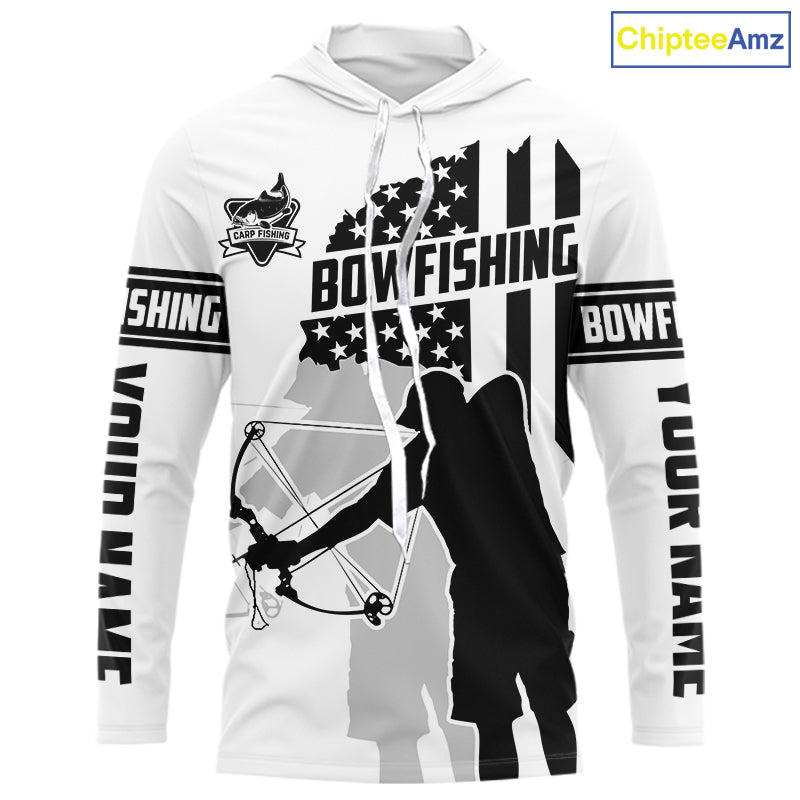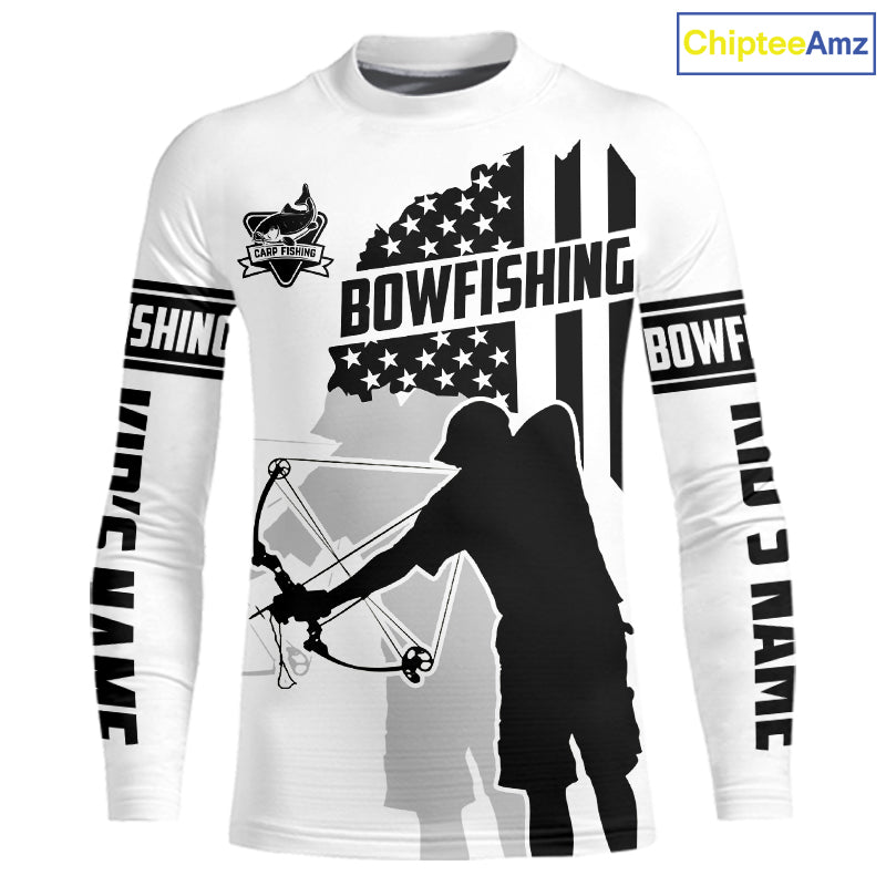 Carp hunter bowfishing black & white American flag Custom UV sun protection Long sleeve Fishing Shirt NQS9817