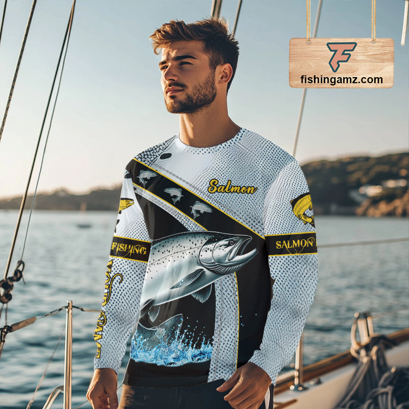 Chinook Salmon fishing scales UV protection Custom long sleeve fishing shirts, Salmon fishing jerseys NQS10216