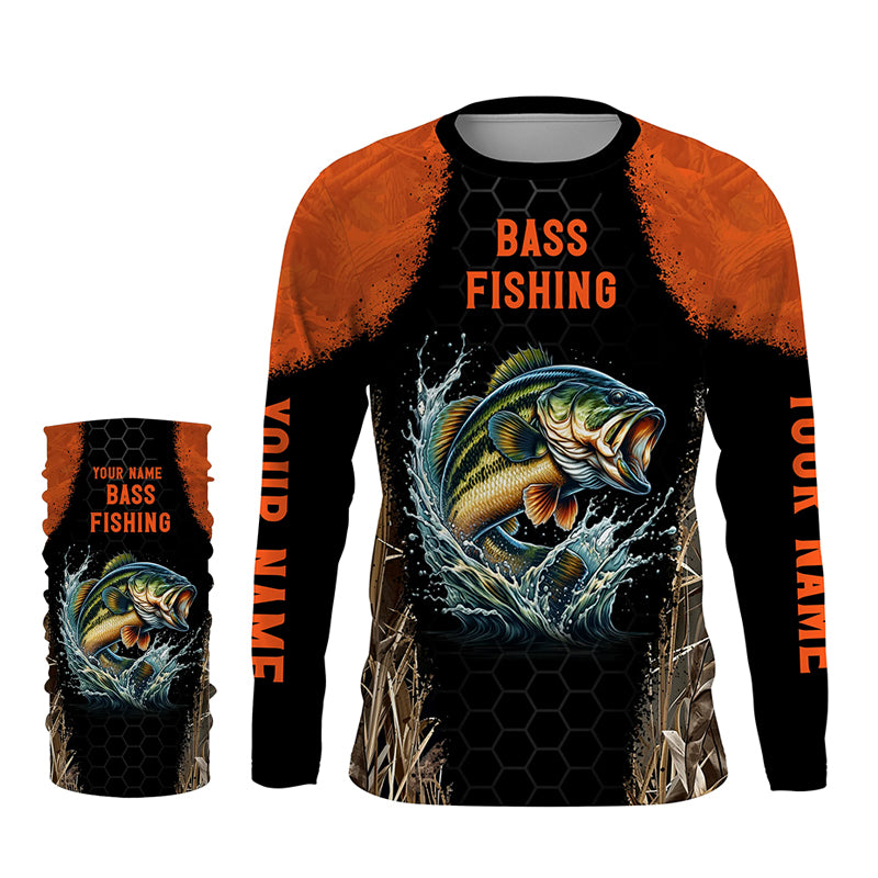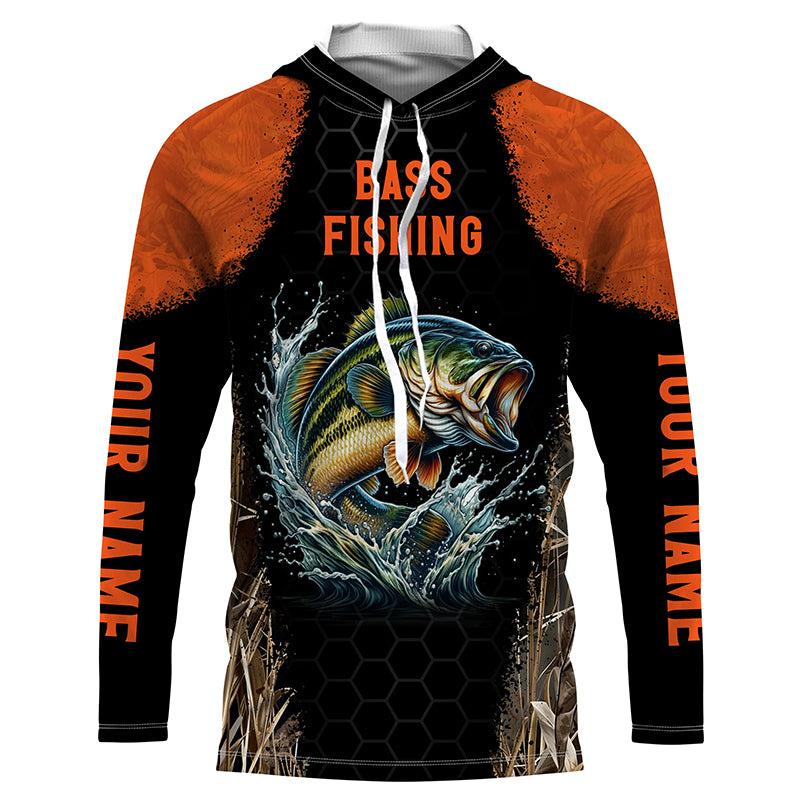 Personalized Bass Fishing apparel orange black sun Protection Bass Fishing Shirts custom Bass jerseys NQS3012