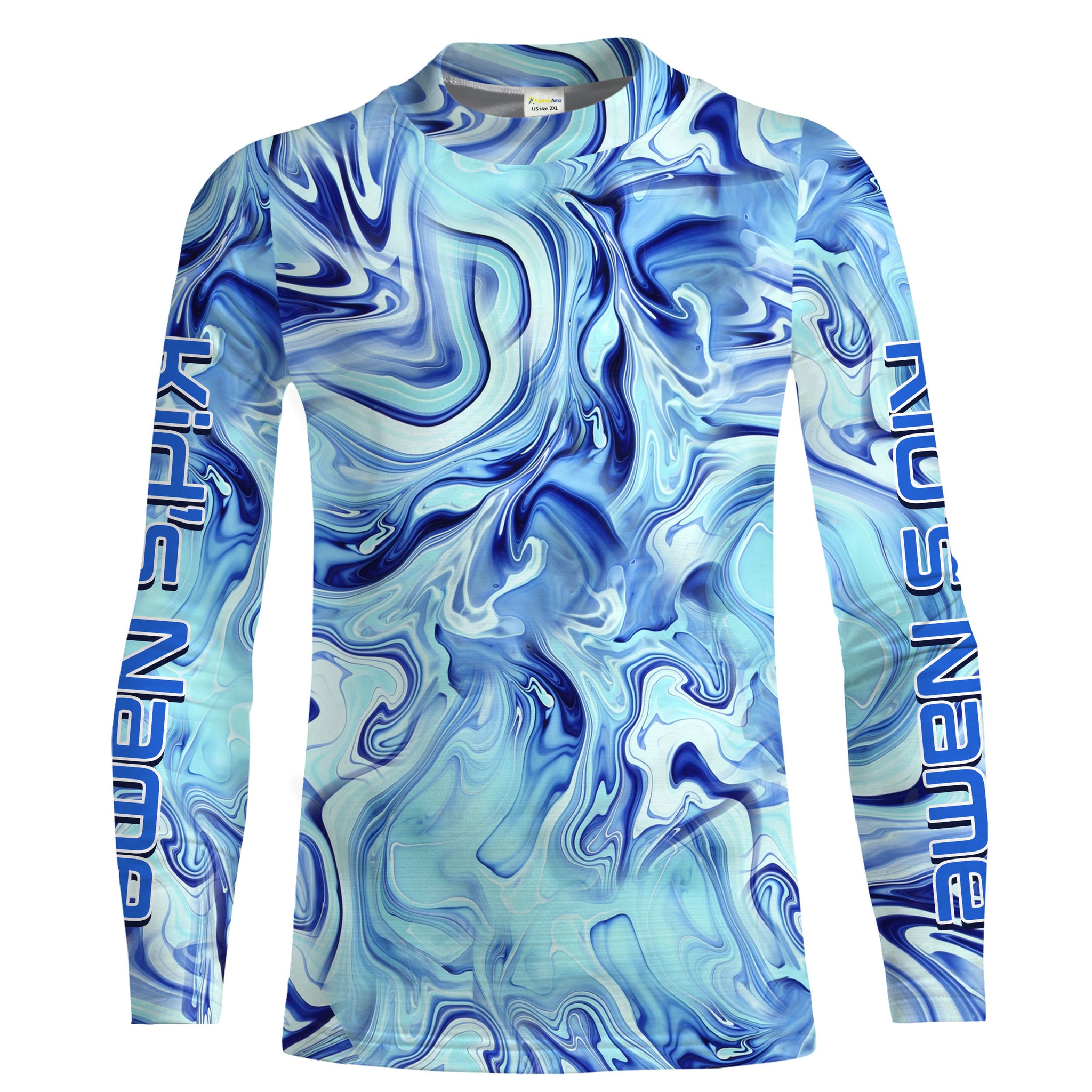 Custom Saltwater Long sleeve Fishing Shirts UV Protection, Sea wave camo Fishing Shirts - IPHW1560