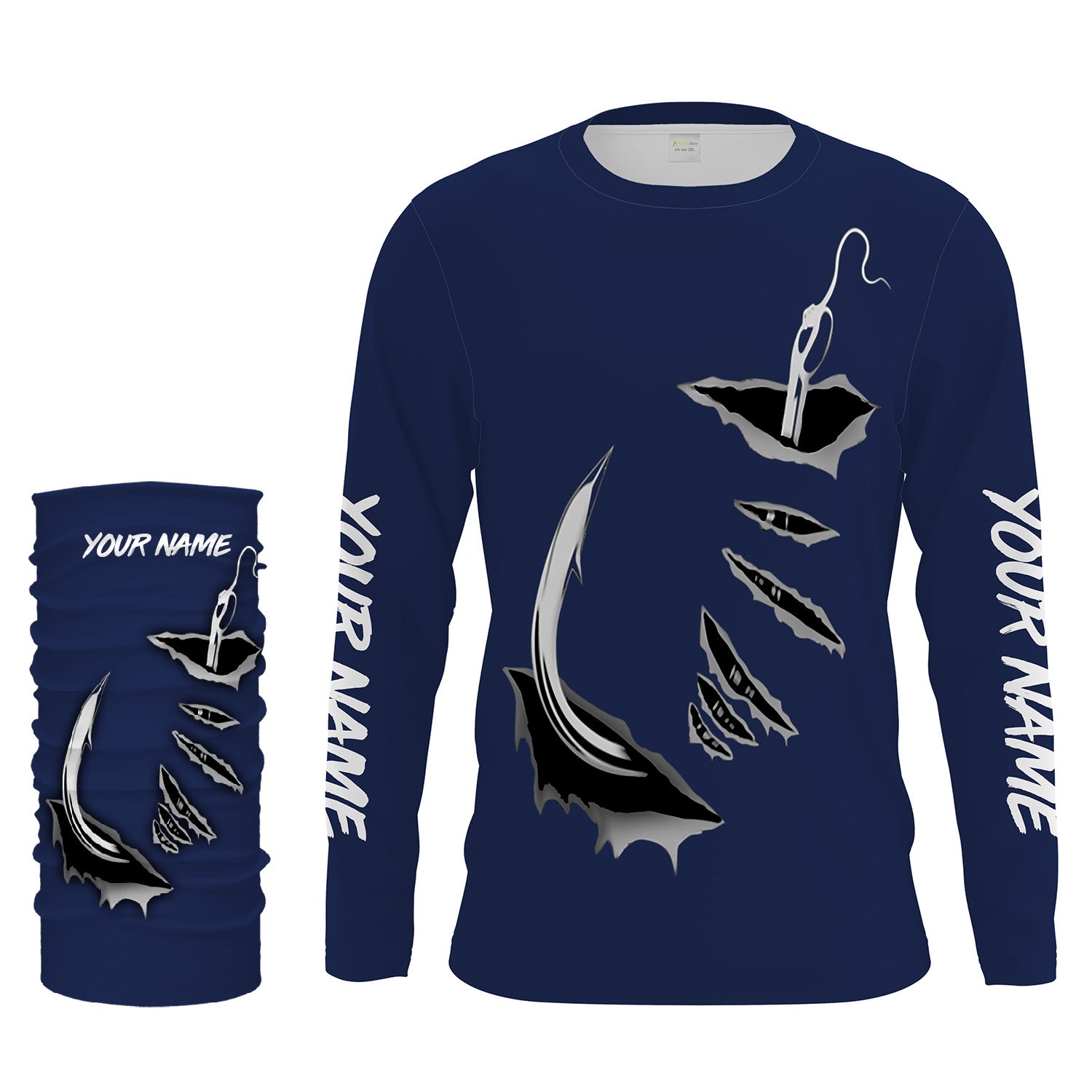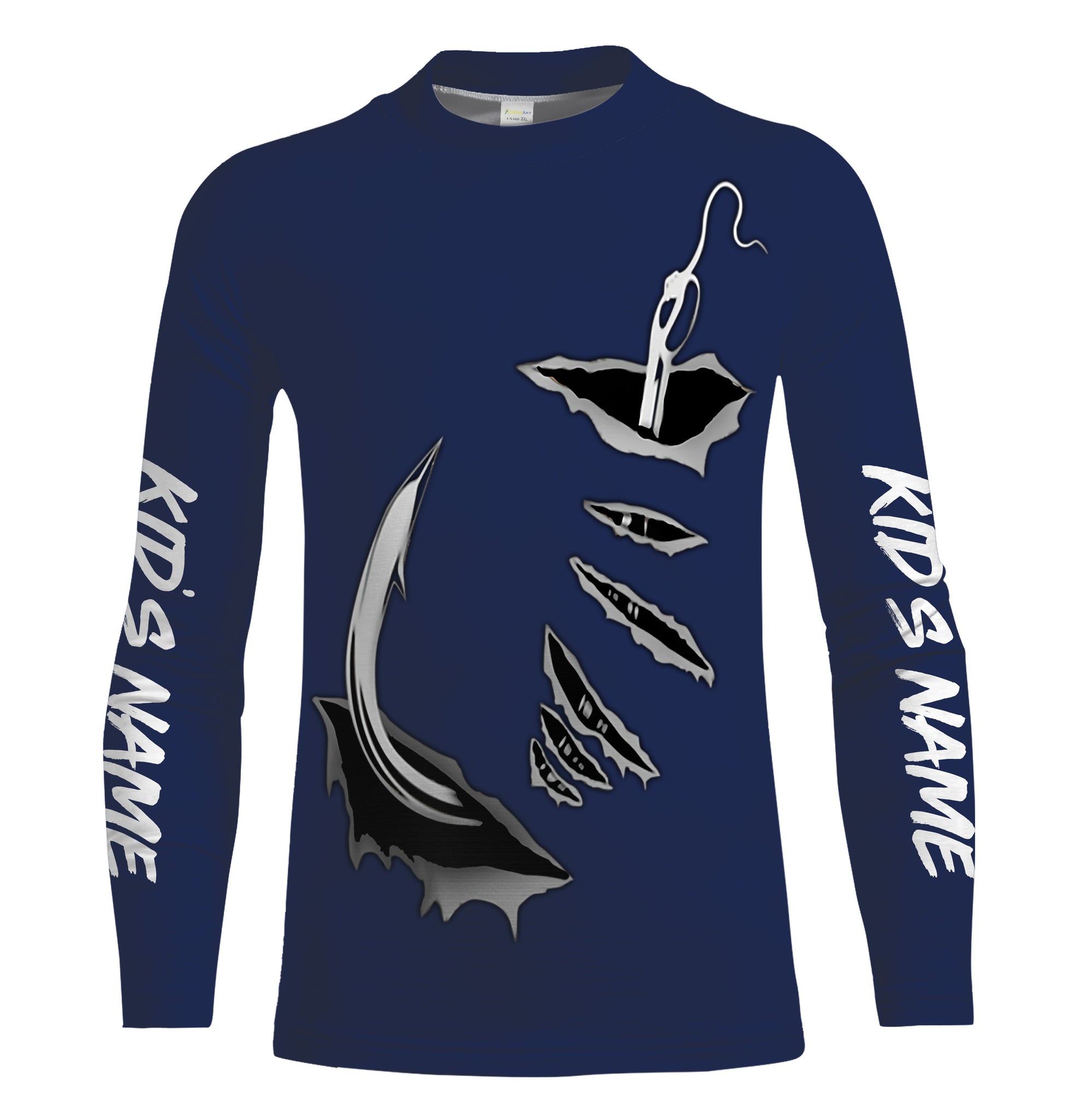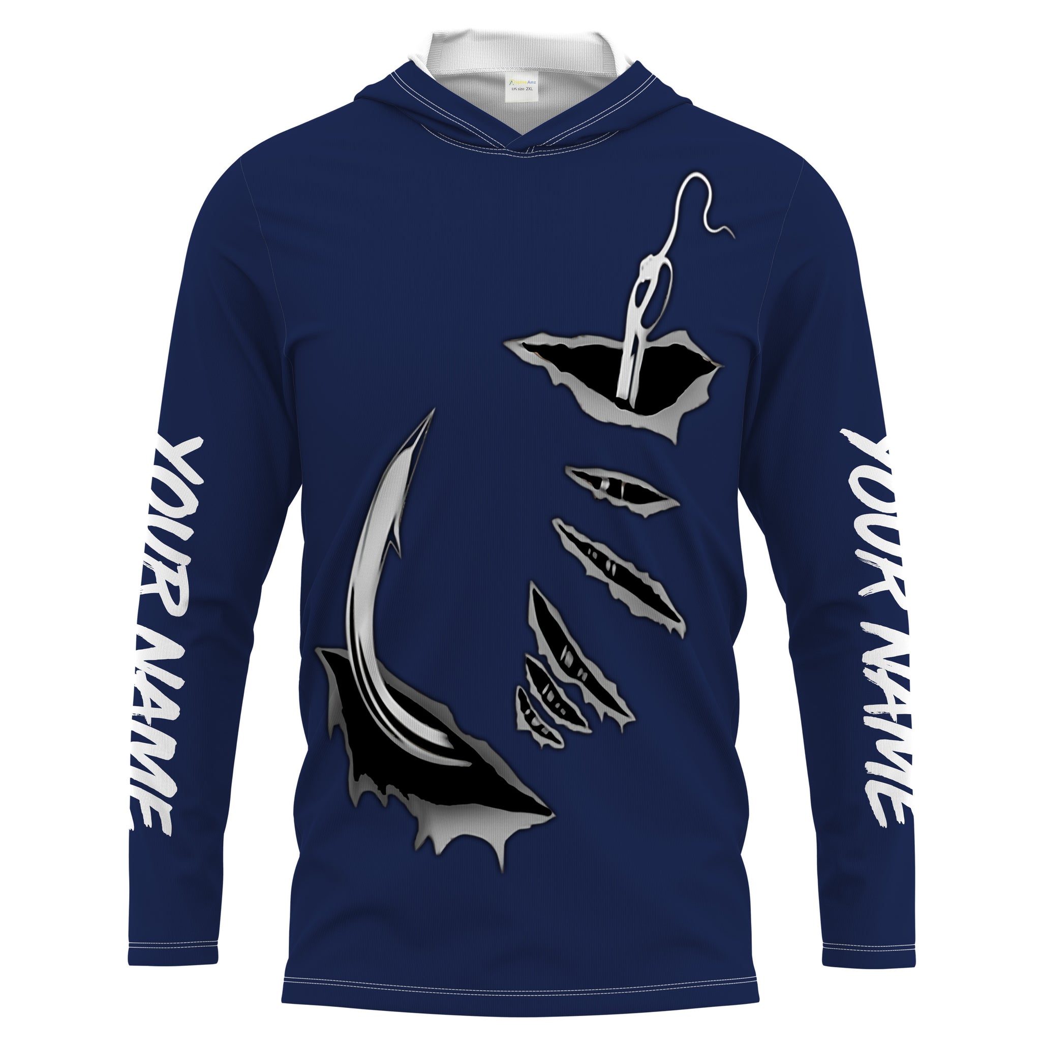 Fish hook Custom Navy blue Long Sleeve performance Fishing Shirts Fishing jerseys - IPHW1488