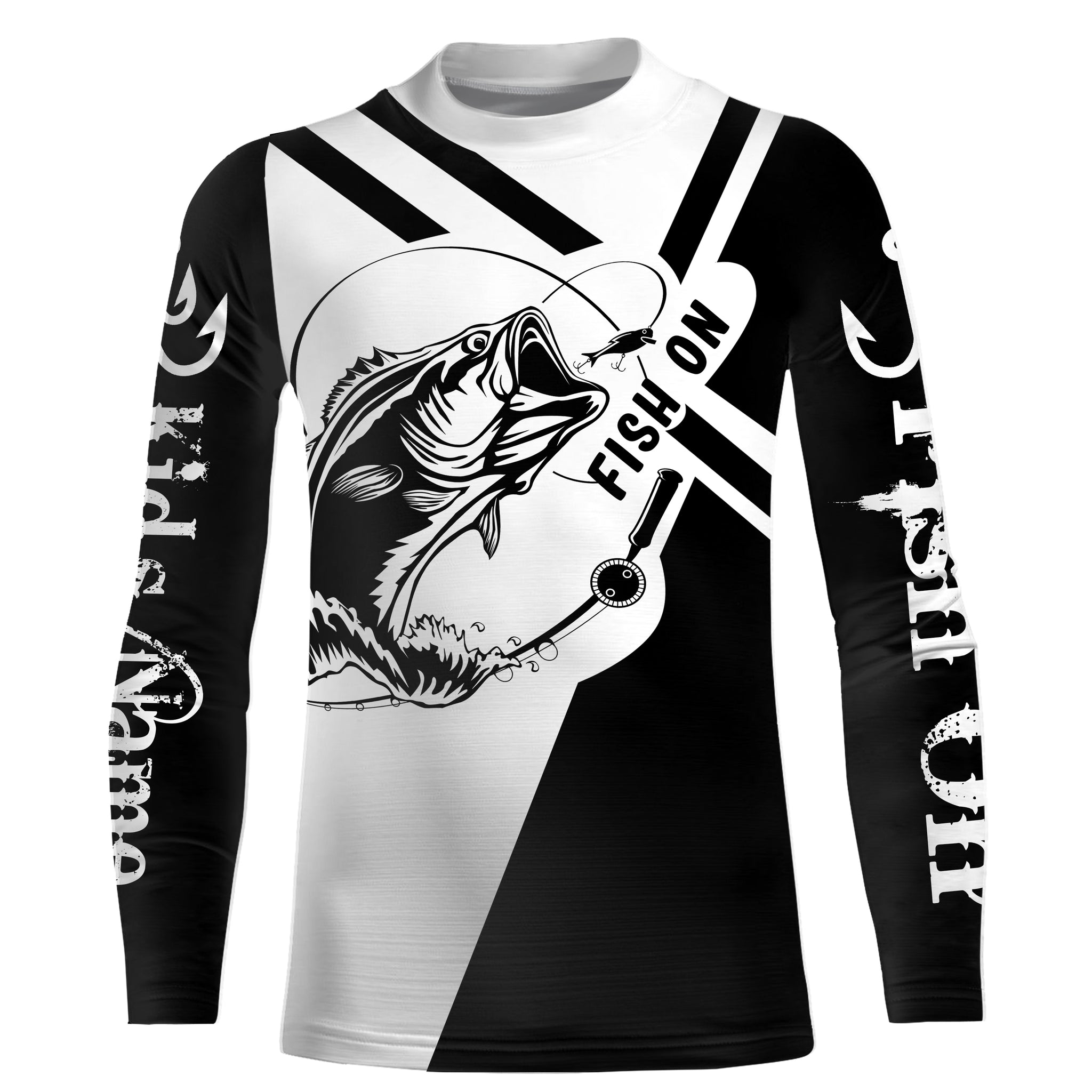 Largemouth Bass Fishing fish on black and white custom name performance fishing shirts NQS899