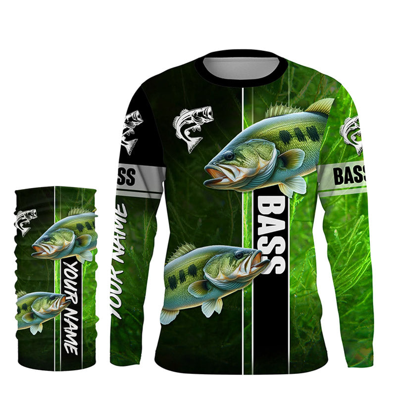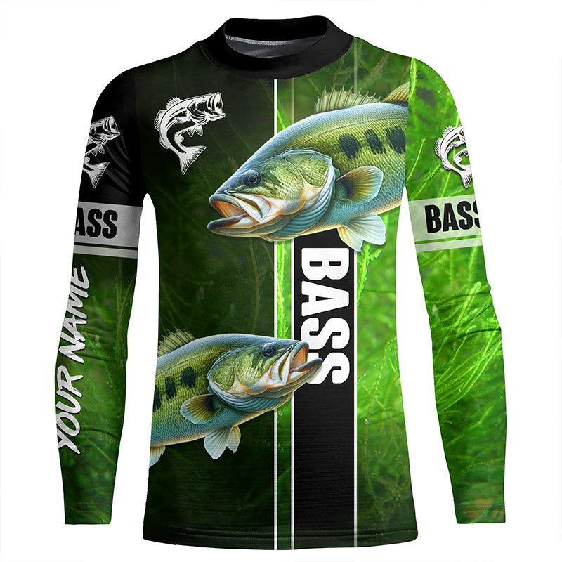 Largemouth Bass Fishing green Customize Name Long Sleeve Fishing Shirts, personalized fishing gifts NQS1725