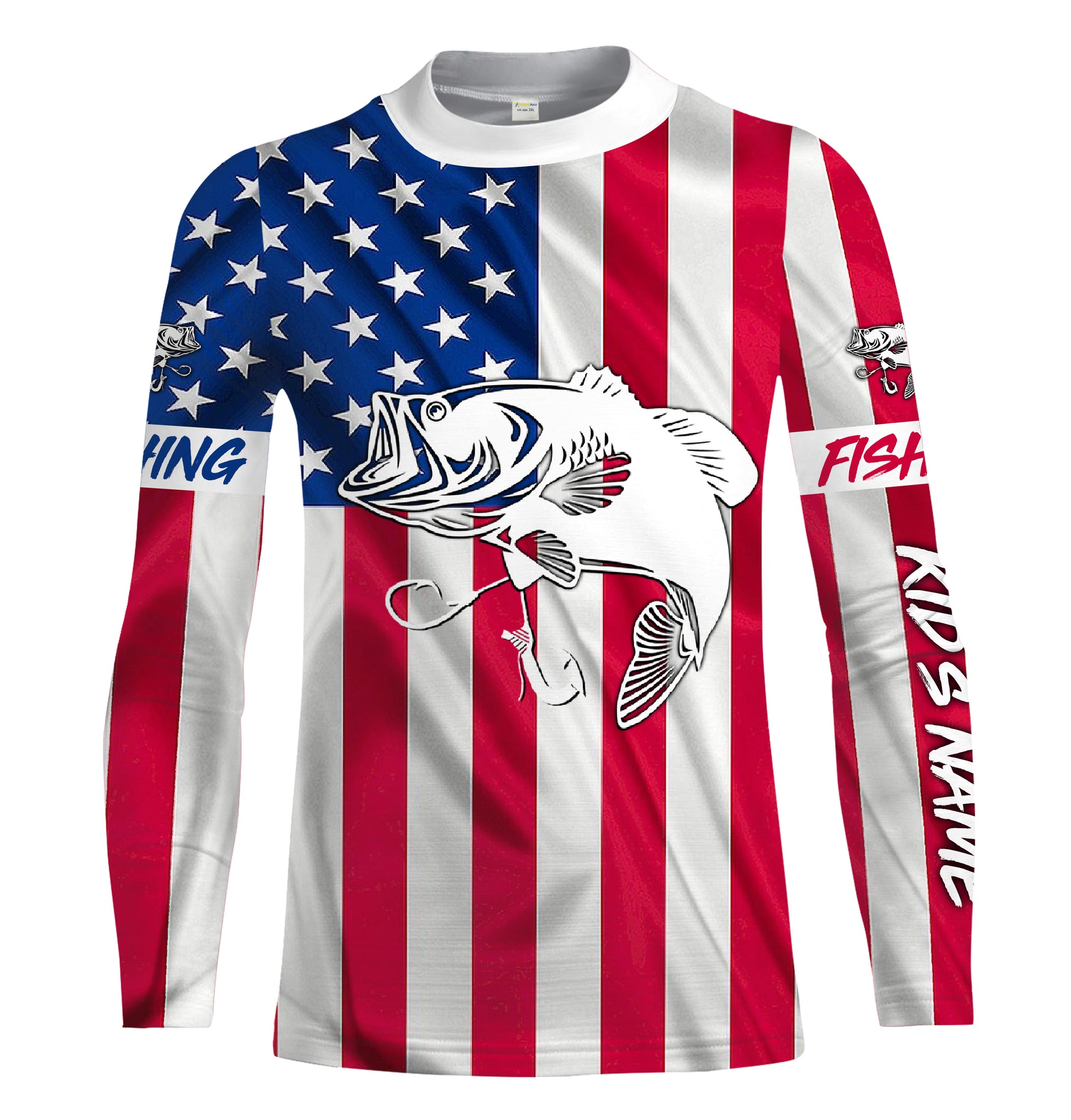 Largemouth Bass fishing American flag patriotic 4th July Customize long sleeves fishing shirt NQS1957