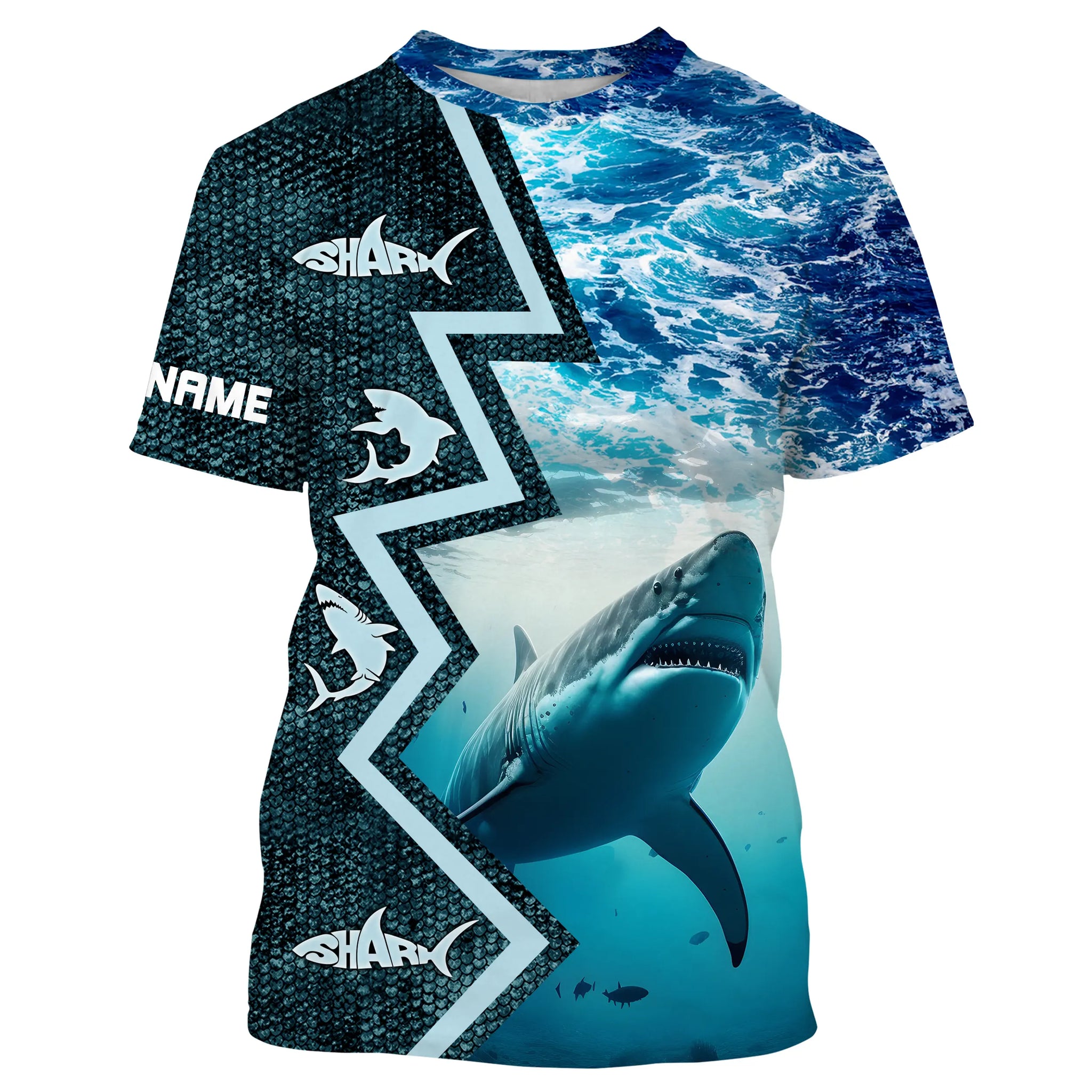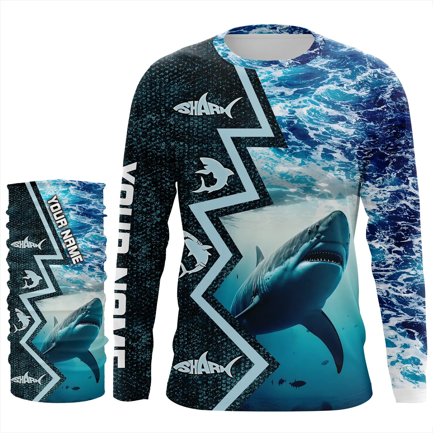 Shark Fishing Custom blue sea wave camo long sleeve performance Fishing Shirt, shark fishing jerseys NQS5042