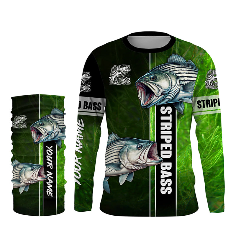 Striped Bass Striper fishing green shirt Custom name UV Long Sleeve Fishing Shirts, fishing gifts NQS2340