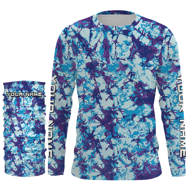 Violet and blue Tie Dye Custom printed Shirt, Blue performance UV protection Fishing shirt FSD3363