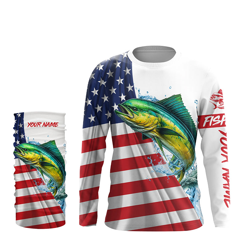 American flag patriotic Mahi mahi fishing Custom UV Protection saltwater long sleeve Fishing Shirts NQS5632