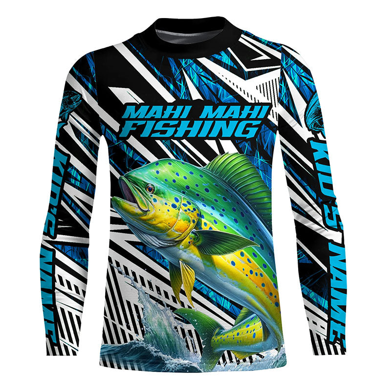 Custom Mahi Mahi Long Sleeve Tournament Fishing Shirts, Mahimahi Fishing Jerseys | Blue Camo IPHW6122