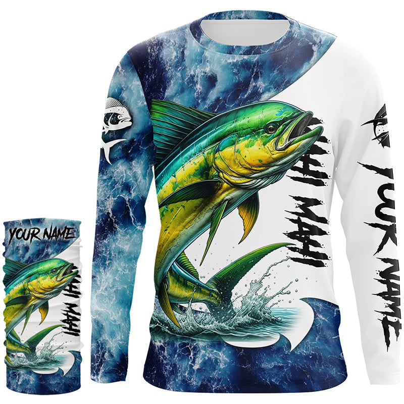 Mahi Mahi Fishing blue ocean sea wave camo Custom long sleeve performance fishing jerseys shirts NQS7886