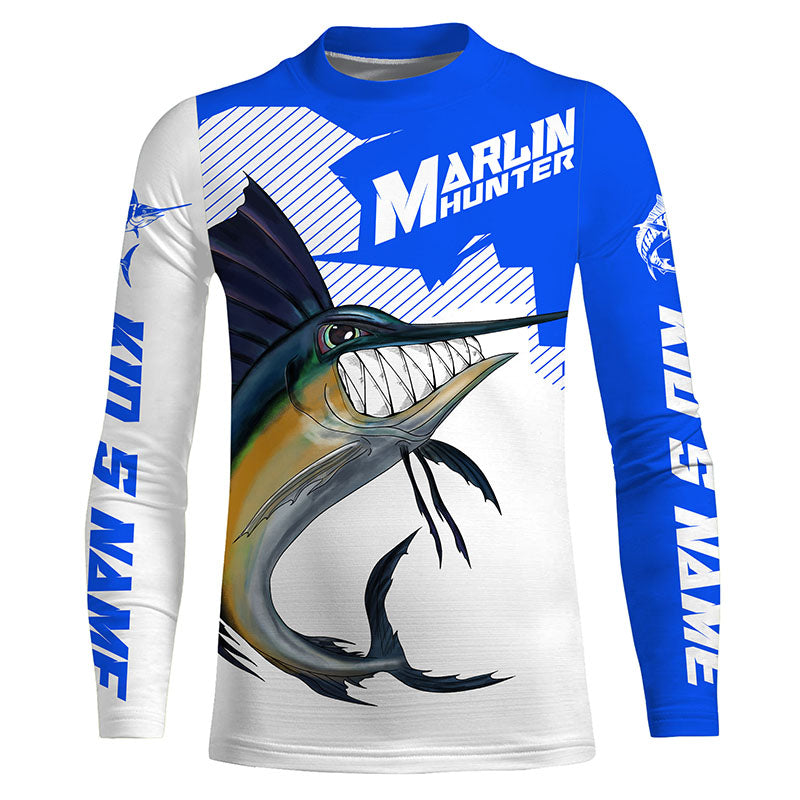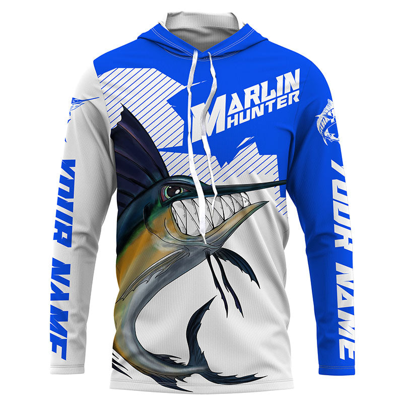 Marlin hunter Fishing jerseys, Custom Angry Marlin Long sleeve performance Fishing Shirts |blue IPHW3407