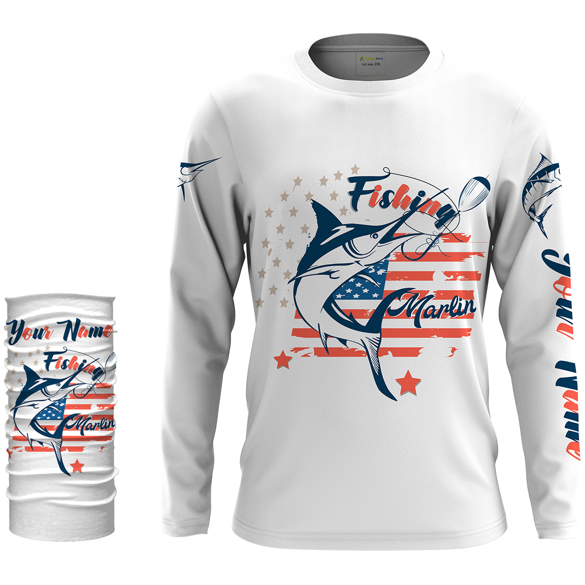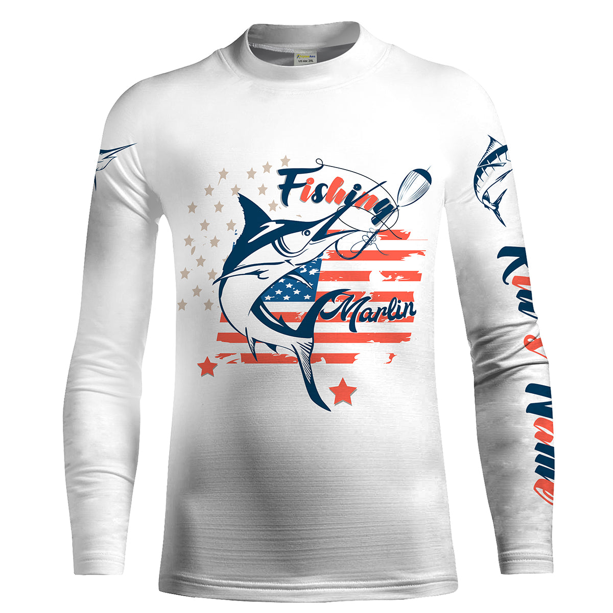 Marlin fishing American flag patriot 4th July Customize name long sleeves UV protection fishing shirts NQS2032