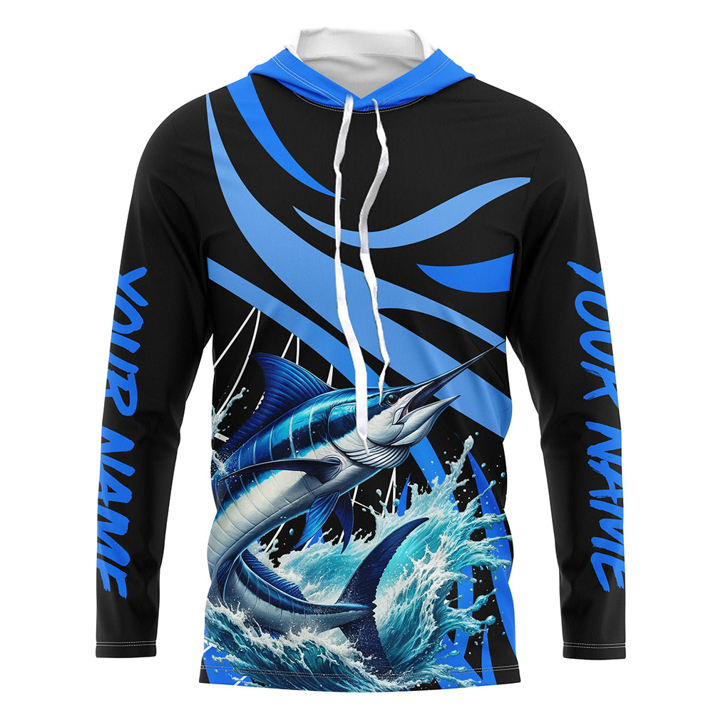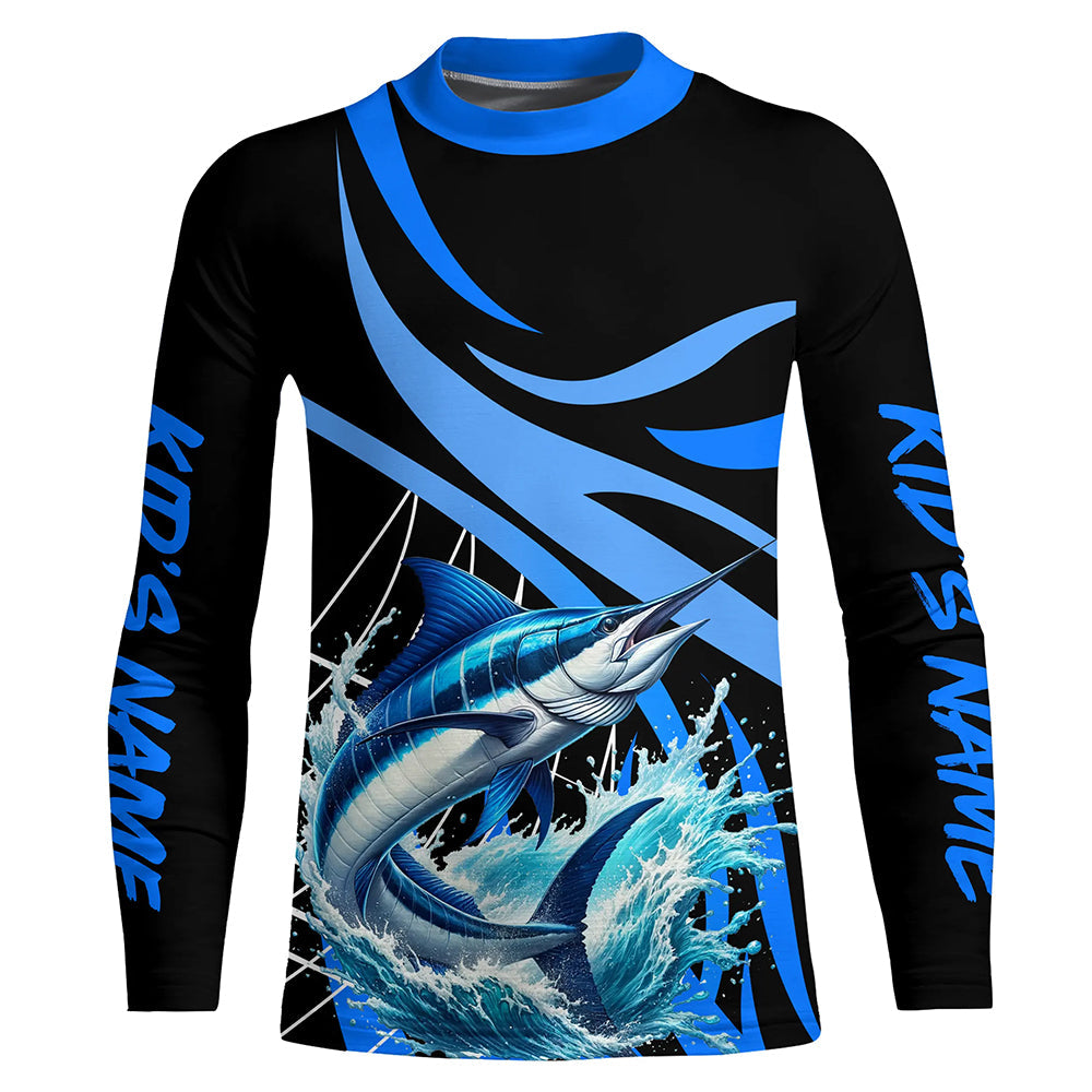 Personalized Blue Marlin Long Sleeve Fishing Shirts, Marlin Tournament Fishing Jerseys | Blue NQS7500