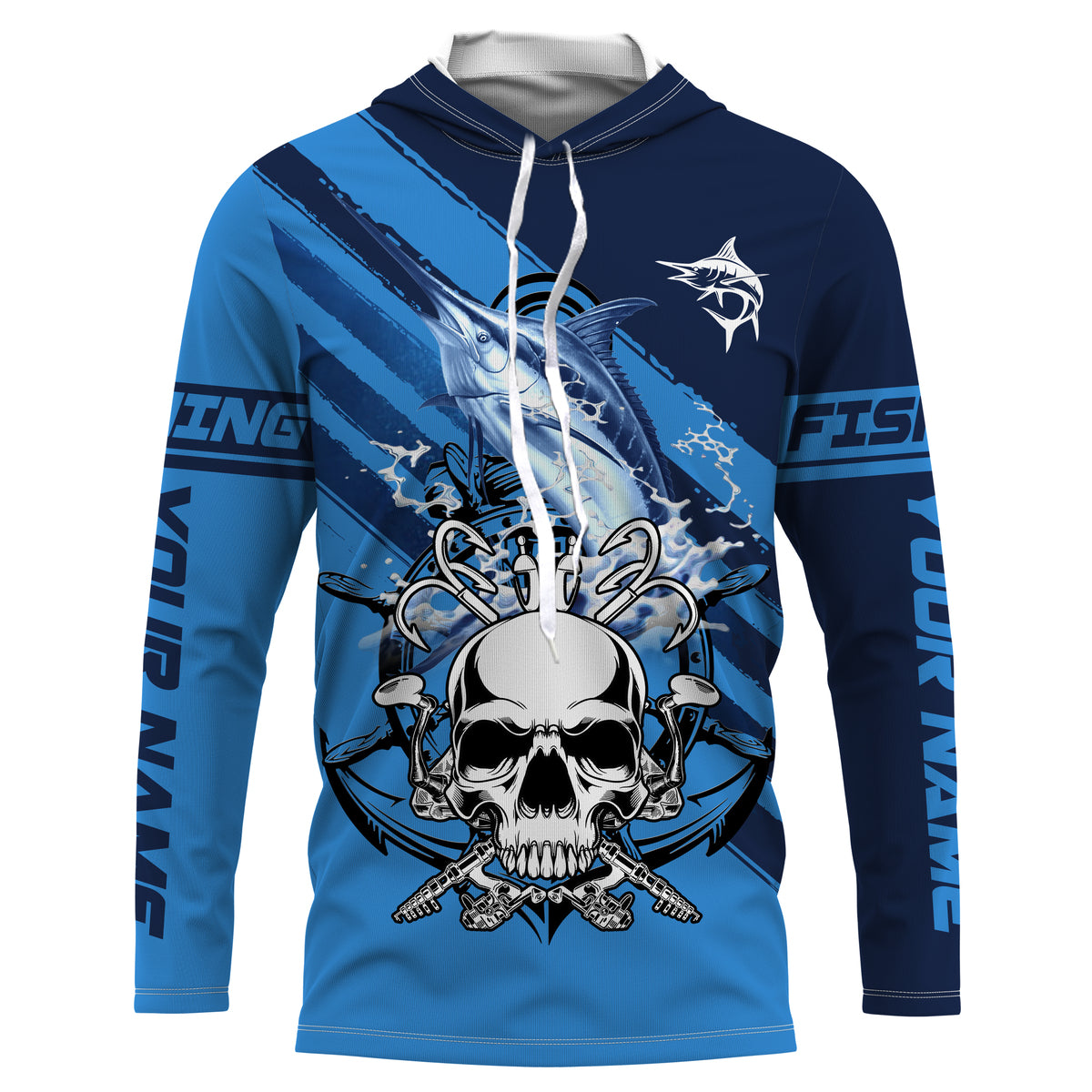 Personalized Marlin Fish reaper Anchor Saltwater blue sea UV Long Sleeve Performance Fishing Shirts NQS3813