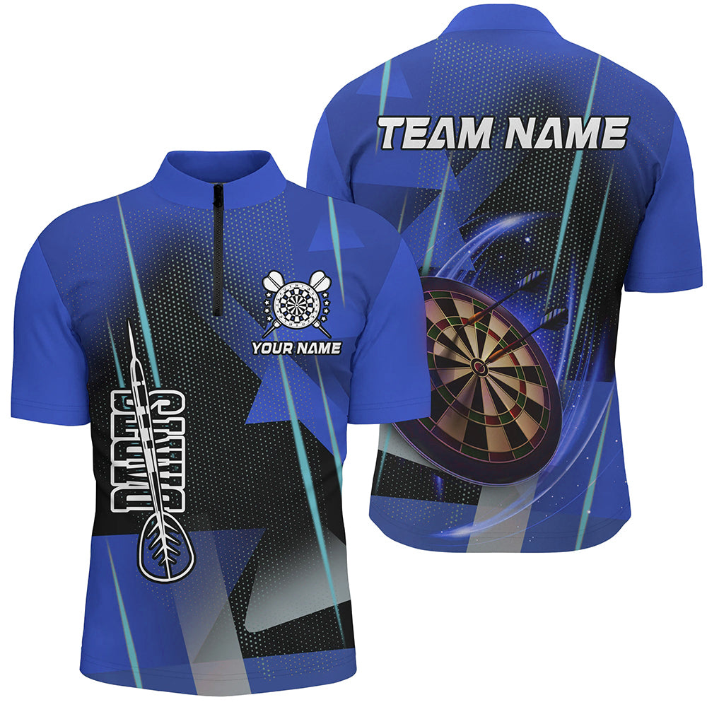 Personalized Darts Polo & Quarter-Zip 3D Printed Shirts For Men Custom Blue Darts Team Jersey TDM2573