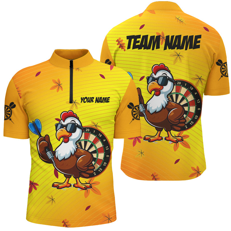 Yellow Funny Turkey Men Darts Shirts Custom Thanksgiving Shirts For Darts Lover, Darts Jerseys TDM2696