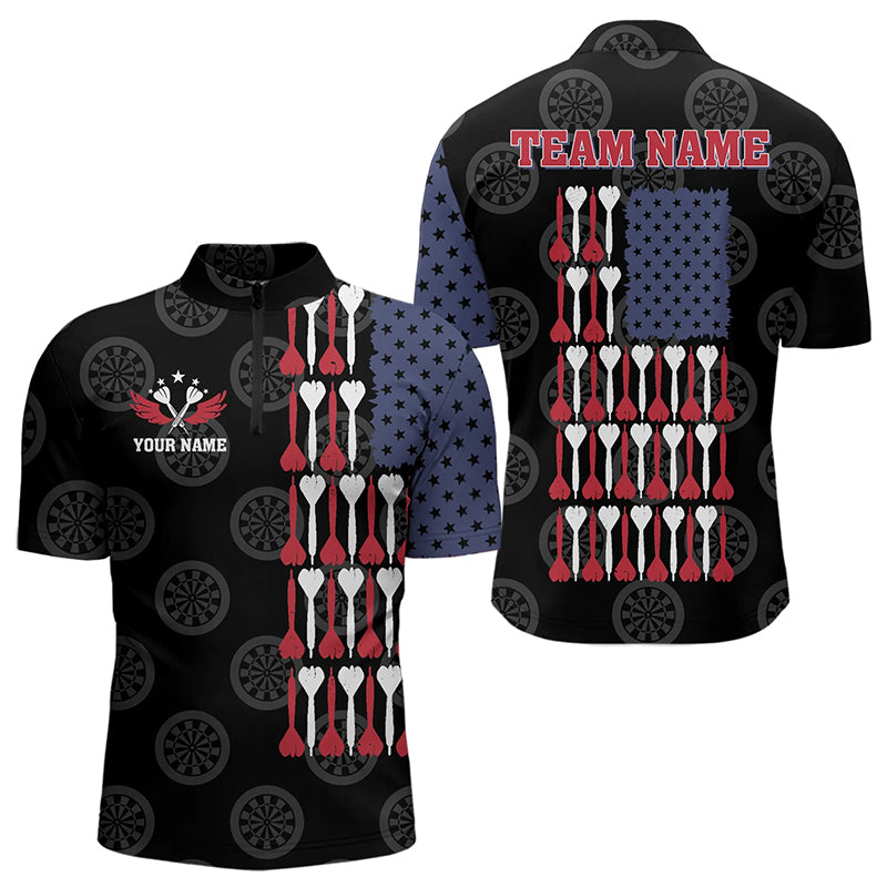 American Flag Black Darts Polo & Quarter Zip Shirt Custom Men Dart Shirts Patriotic Dart Jerseys TDM3355