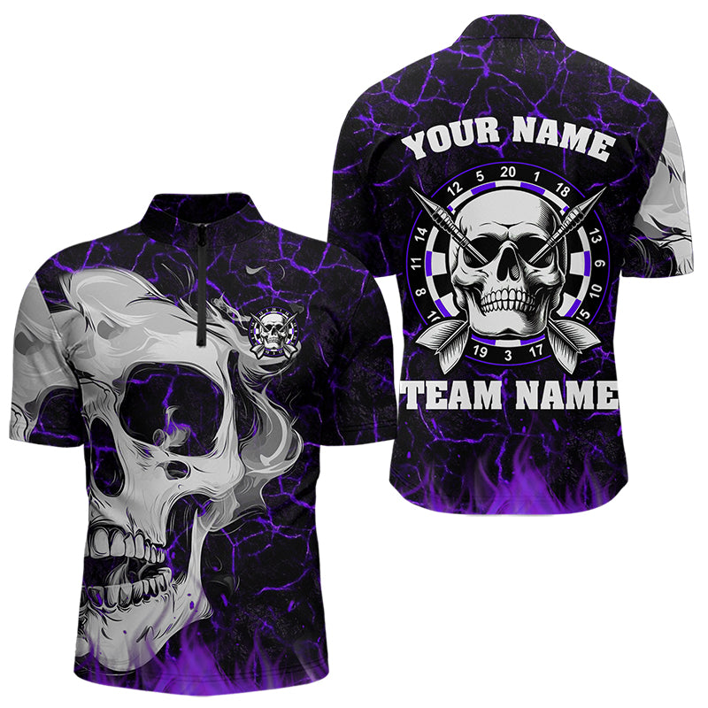 Personalized Purple Glowing Fire Crack Skull Dart Shirt Custom Dart Shirts For Men Dart Team Jersey TDM3493