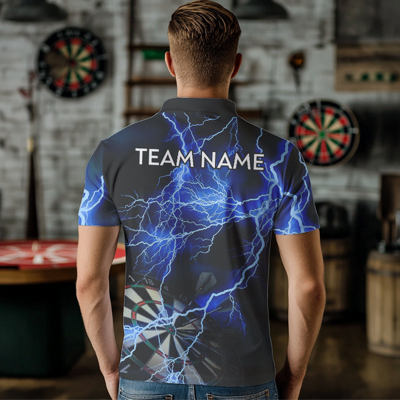 Blue And Black Thunder Lightning Dart Shirts With Pocket For Men Custom 3D Darts Team Jerseys TDM3524