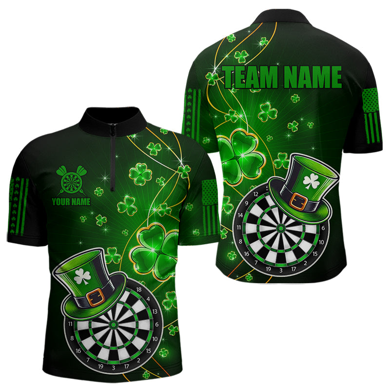 Green Glowing Shamrock  Luckiest Dart Shirts For Men Custom St Patrick Day Dart Jerseys Outfit TDM3592