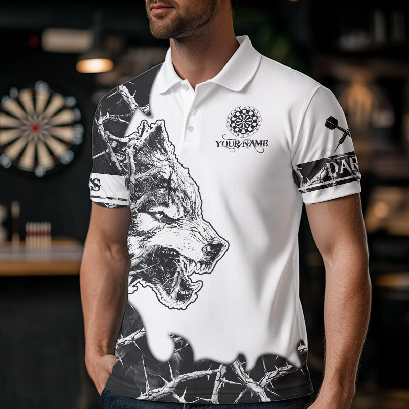 White Black Thorny Camo Wolf Dart Shirts For Men Custom Camouflage Dart Team Shirt Dart Jerseys TDM3815