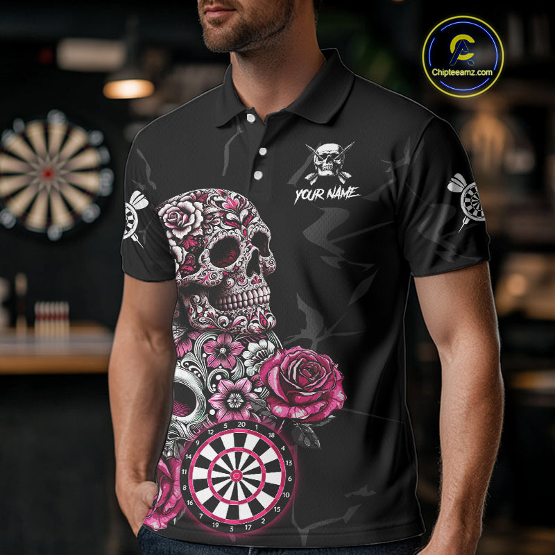 Personalized Pink Skull Roses Gothic Romance Darts Shirt For Men, Dart Jersey Outfit, Dart Gifts TDM4145
