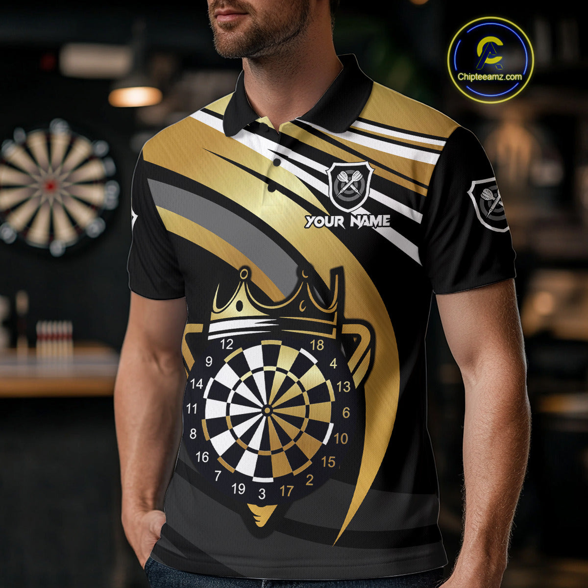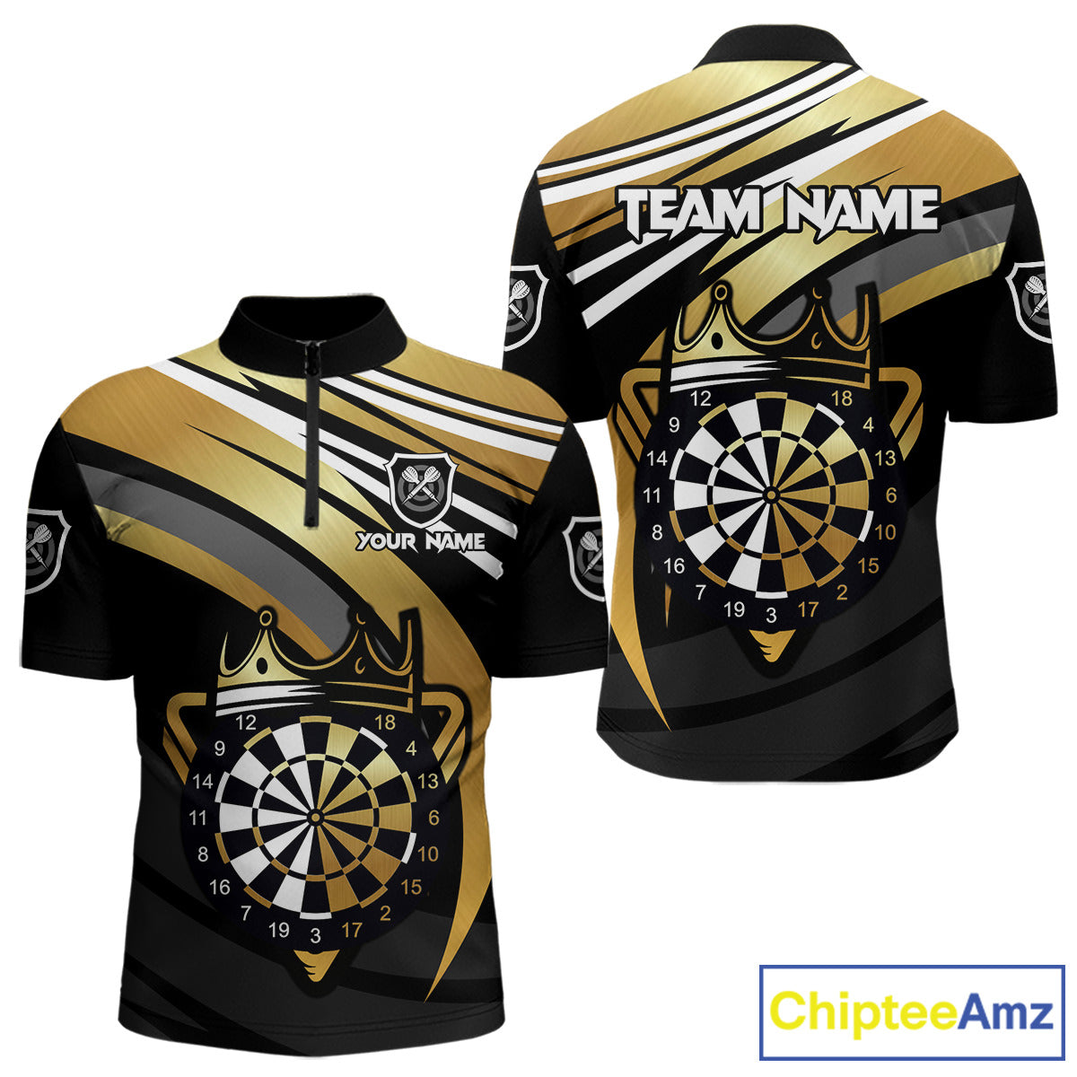 Black And Gold Dartboard Crown Darts Shirt For Men Custom Darts Sport Jersey Team Polo & 1/4 Zip TDM4793