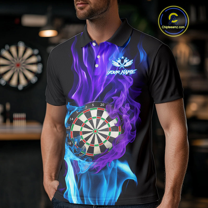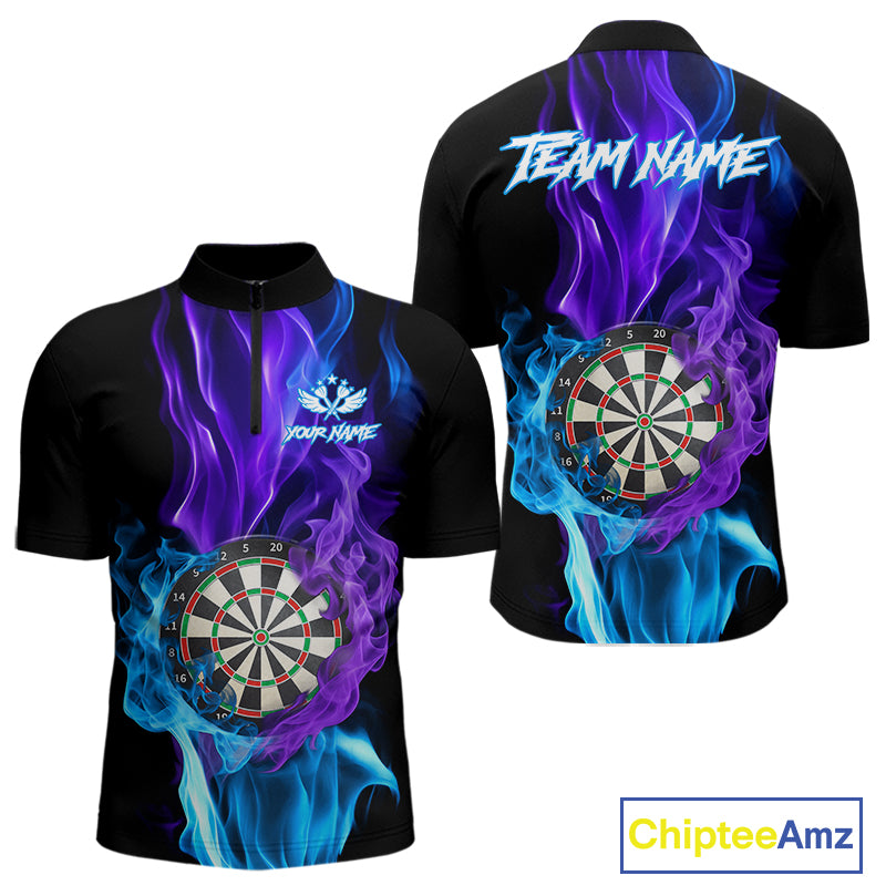 Purple And Blue Flaming Smoke Darts Shirt For Men Custom Darts Jersey Team Polo & Quarter Zip TDM5143