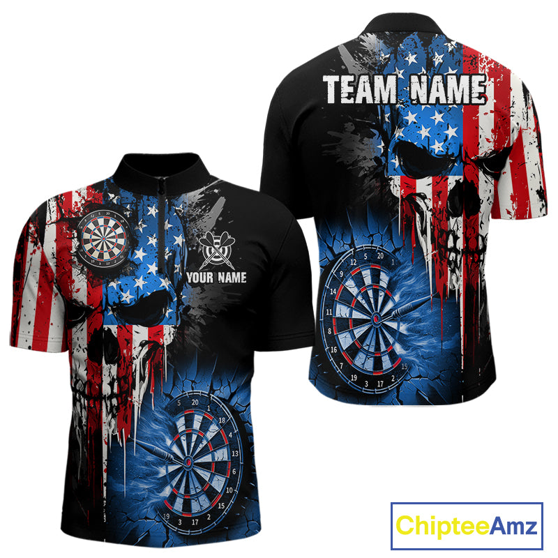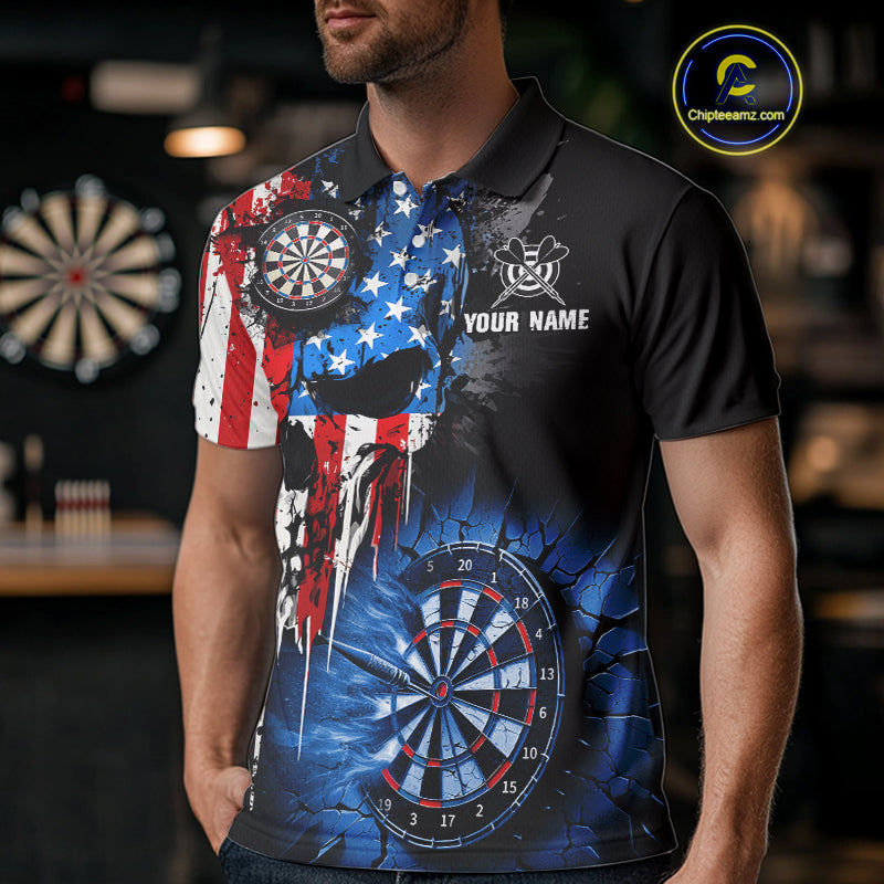 Patriotic American Flag Grunge Skull Mens Dart Shirts Custom Dart Jerseys Team Polo & 1/4 Zip TDM5171