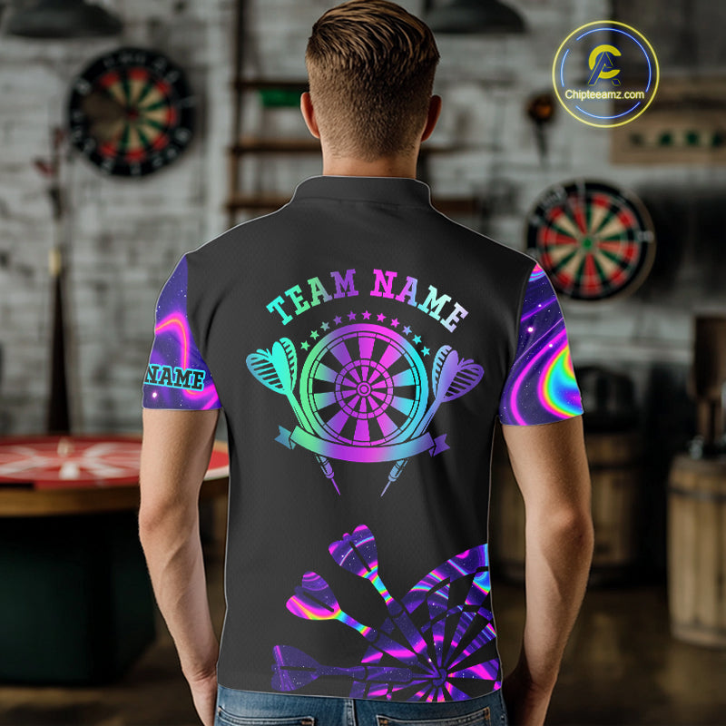 Neon Purple Holographic Mens Dart Shirts Custom Glowing Dart Jersey Team Polo & Quarter Zip TDM5172