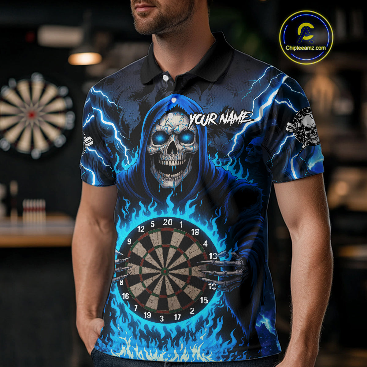 Blue Grim Reaper Thunder Lightning Mens Dart Shirts Custom Flame Dart Jerseys Team Polo & 1/4 Zip TDM5174