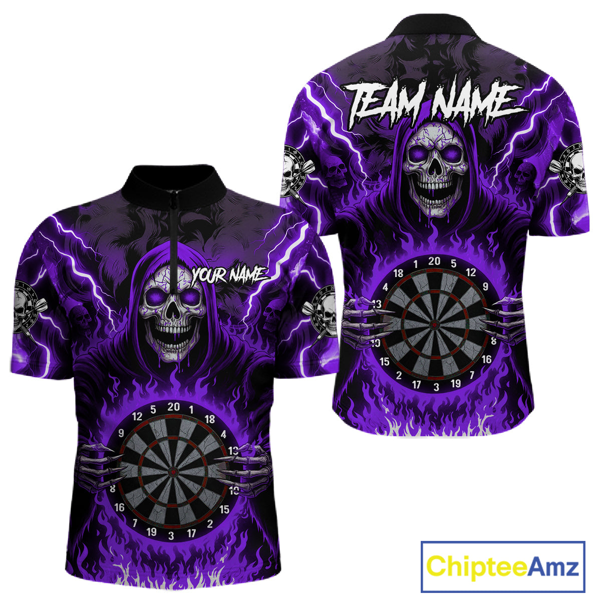 Purple Grim Reaper Thunder Lightning Men Dart Shirts Custom Flame Dart Jerseys Team Polo & 1/4 Zip TDM5176