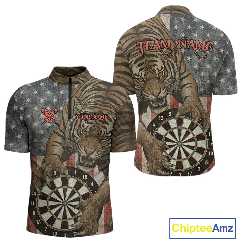 Personalized Vintage American Flag Tiger Darts Shirt For Men, Patriotic Dart Team Jerseys TDM5189