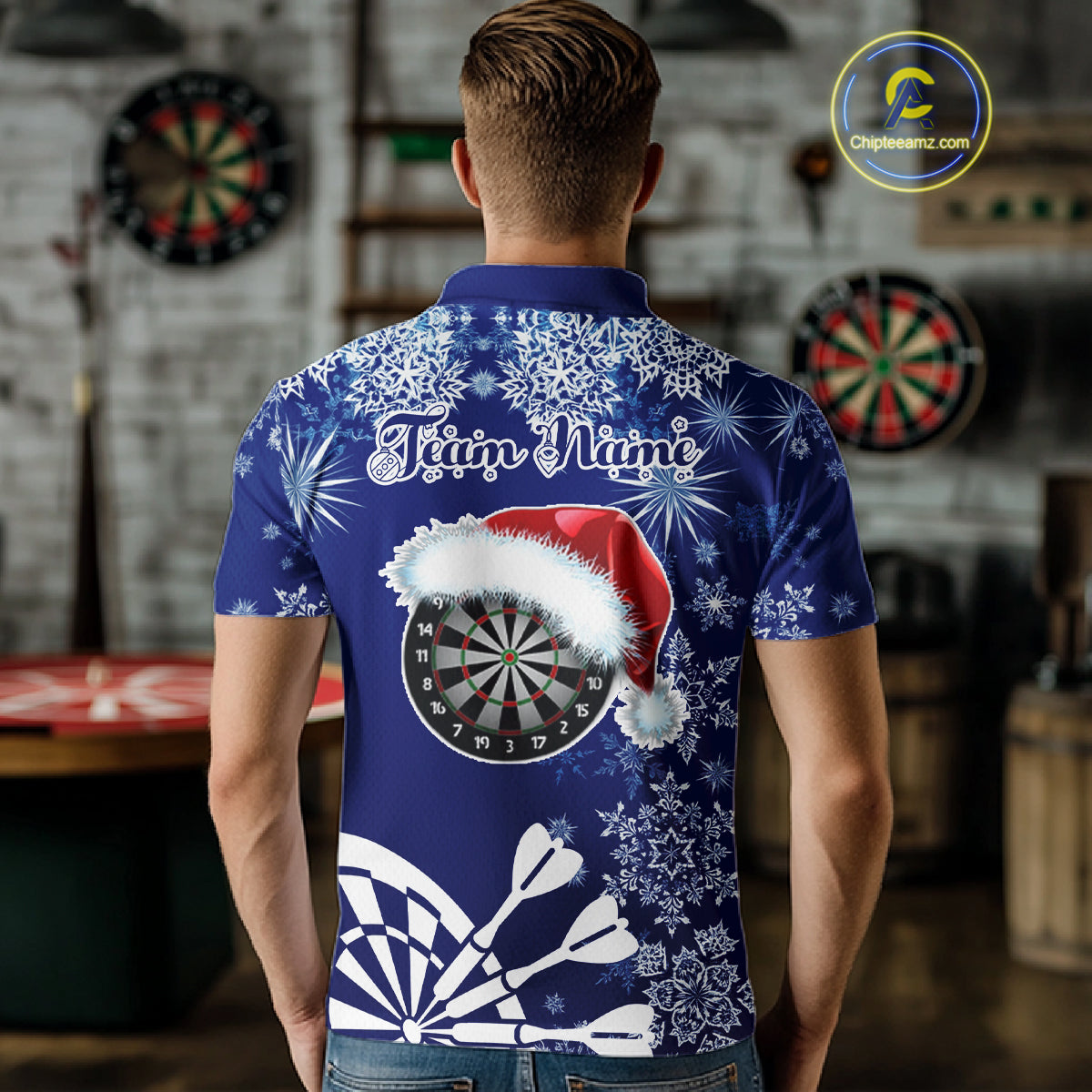 Blue Christmas Snowflake Pattern Darts Shirt For Men Custom Dart Jersey, Xmas Darts Gifts TDM5224