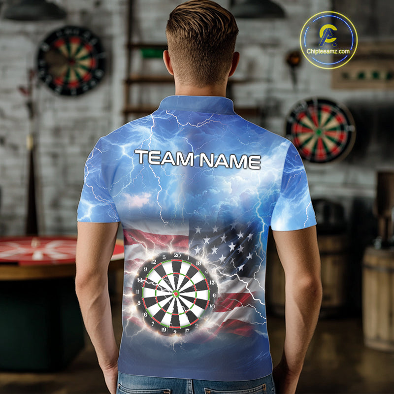Blue American Flag Thunder Lightning Darts Shirt For Men Custom Darts Jersey Team Polo & 1/4 Zip TDM5270