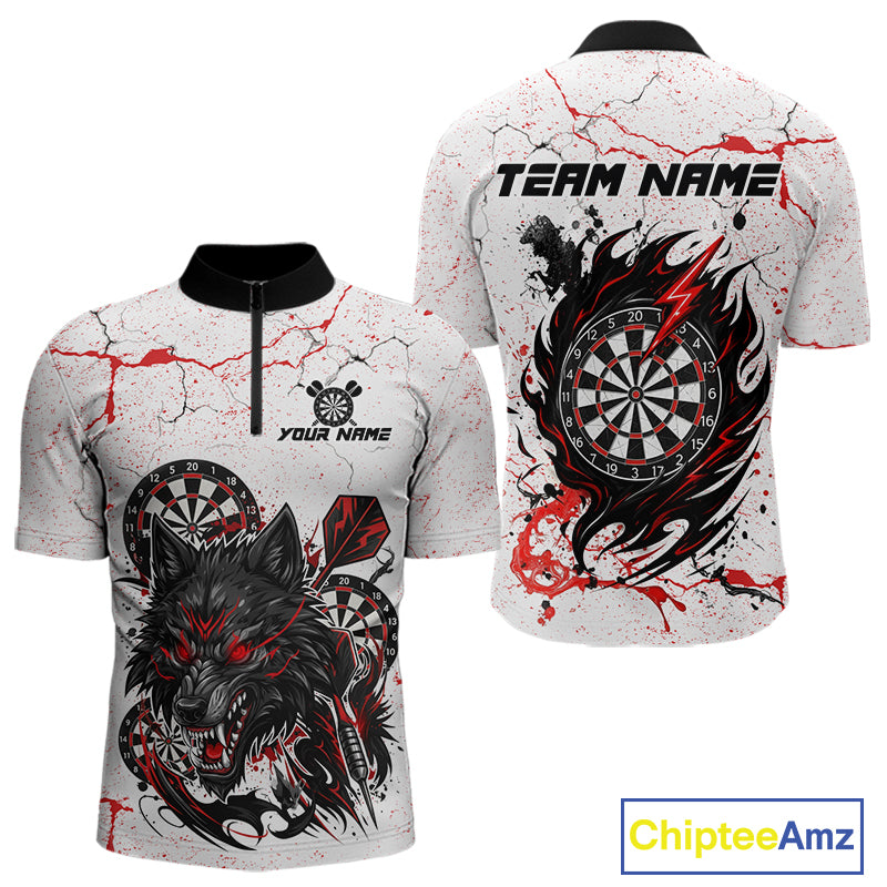 Personalized White Grunge Wolf Darts Shirt For Men Custom Darts Team Jersey Polo & 1/4 Zip| Red TDM5281