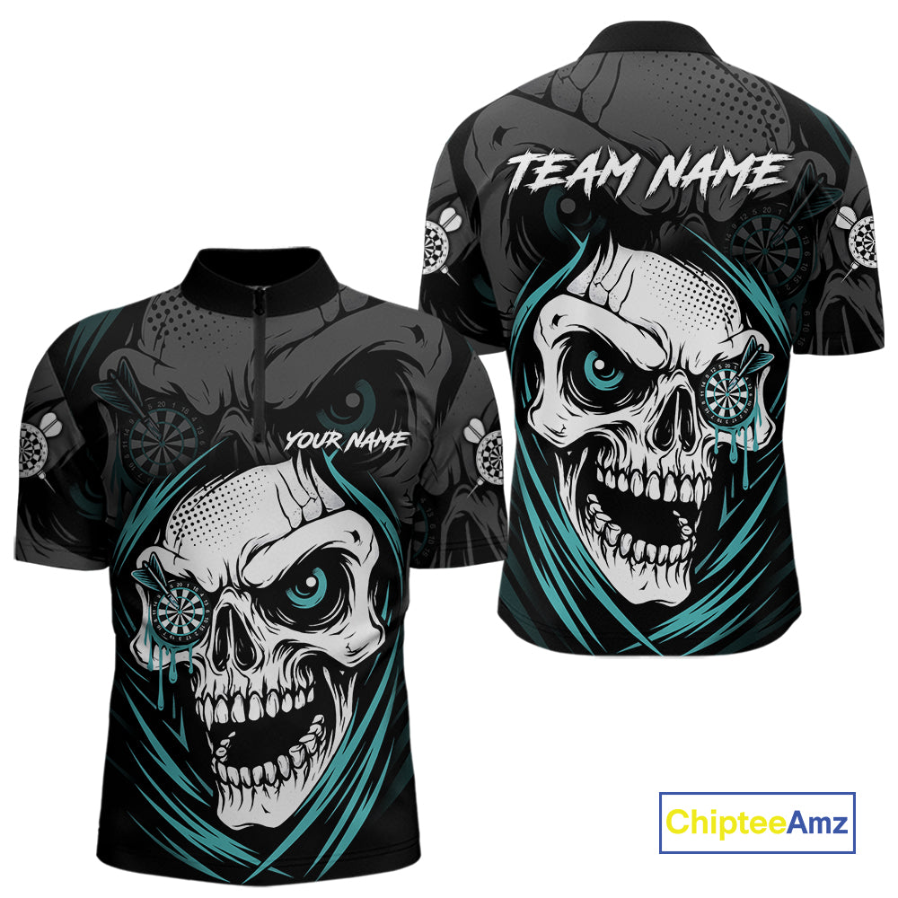 Personalized Funny Skull Darts Shirts For Men Custom Darts Jersey Team Polo & 1/4 Zip| Turquoise TDM5297