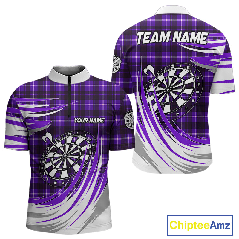Personalized Purple Dartboard Plaid Mens Darts Shirt Custom Darts Jersey Team Polo & 1/4 Zip TDM5327