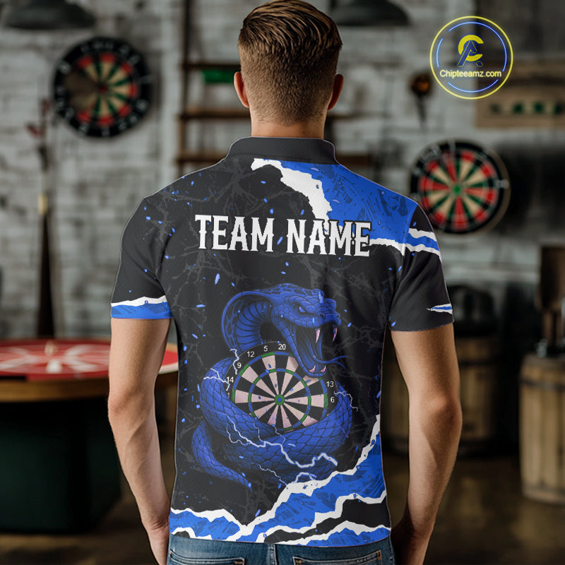 Black And Blue Dartboard Cobra Snakes Darts Polo & 1/4 Zip Custom Mens Darts Shirt, Darts Jersey TDM5338