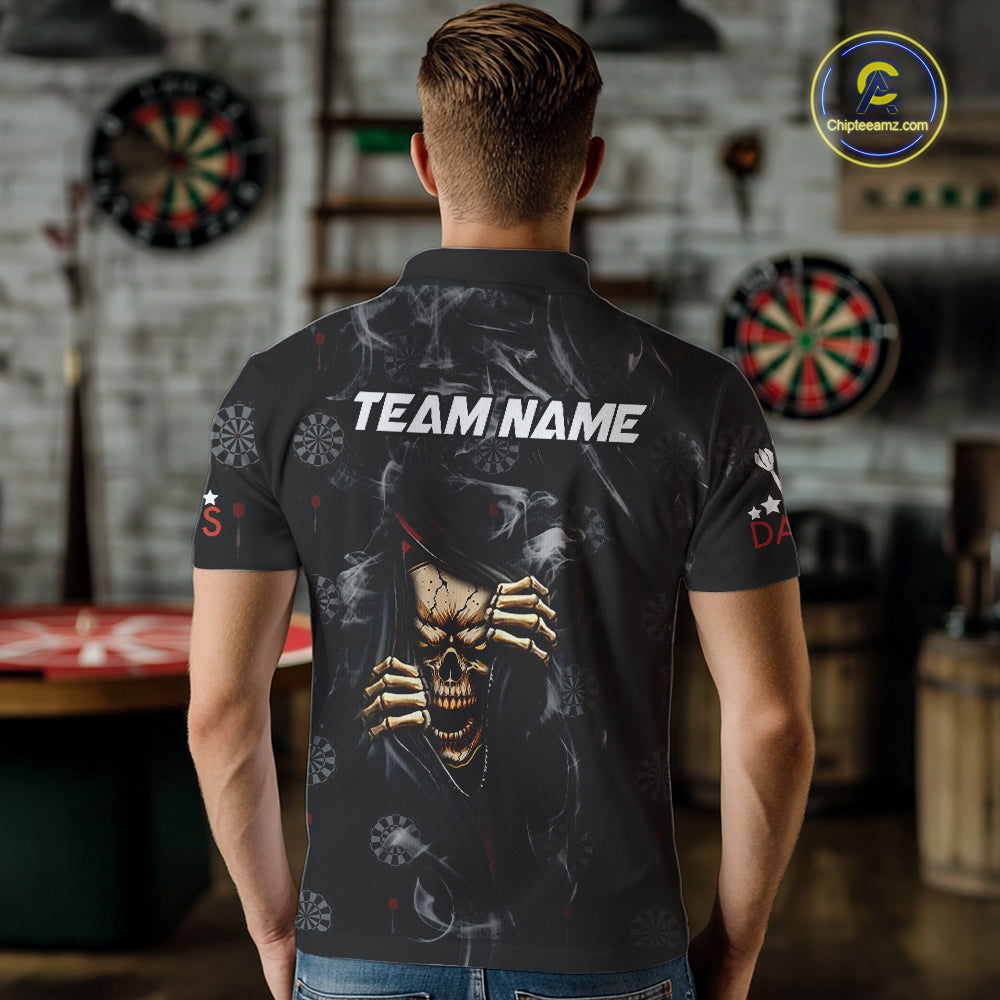Personalized Skull Smoke Pattern Darts Shirt For Men Custom Darts Jersey Team Polo & 1/4 Zip TDM5355