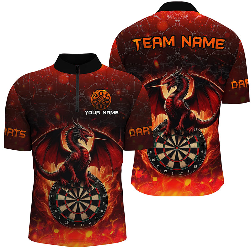 Darts Dragon Fire Flame 3D Printed Darts Shirts For Men Custom Team League Darts Jerseys |Red TDM2210