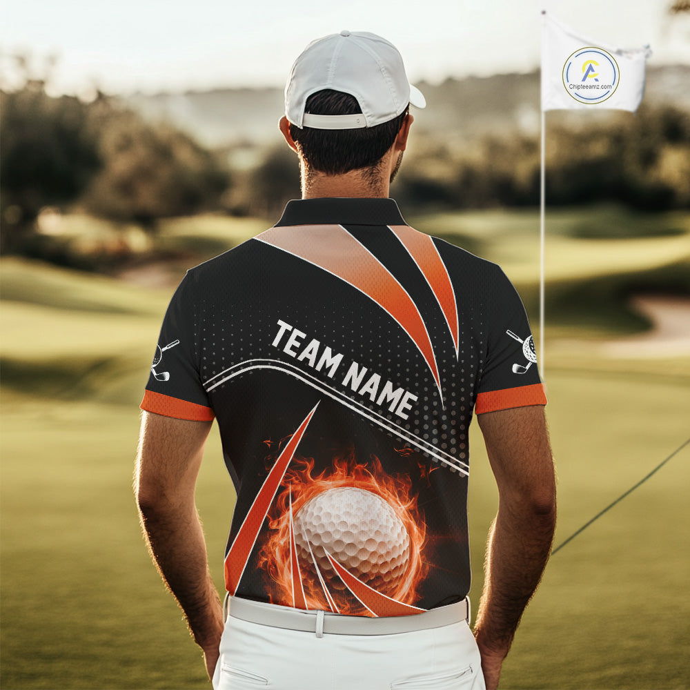 Black and Orange Fire golf ball custom Men golf polo shirts, personalized golf outfits for team men NQS10124