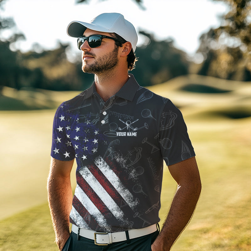 Retro American Flag Eagle Golf Polo Shirt for Men Custom Patriotic Golf Team Jersey best golf gifts NQS9633