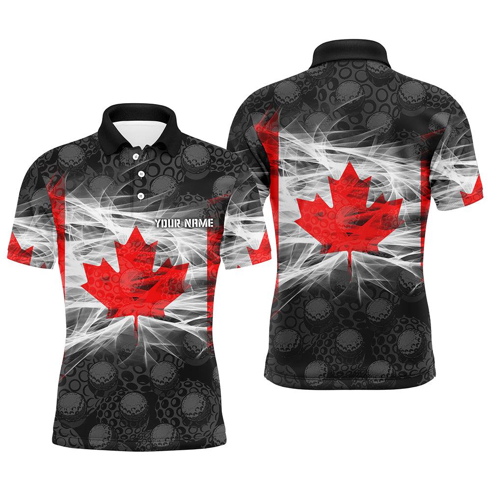 Black Mens Golf Polo Shirts Red Canada Leaf Custom Patriotic Canadian Flag Golf Shirts For Men TDM1851